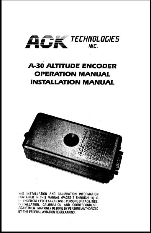 $12.00| /ACK Technologies A30 Altitude Encoder Operation Installation Manual (AKA30-OP-C)