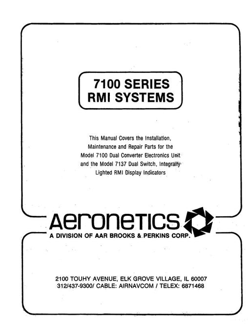 $40.00| /Aeronetics 7100 Series RMI Systems Maintenance, Installation, Parts (A*7100SER-M-C)AeroneticsThis Manual Covers the Installation, Maintenance and Repair Parts for the Model 7100 Dual Converter Electronics Unit and the Model 7137 Dual Swit... View full details$40.00| /Sale
