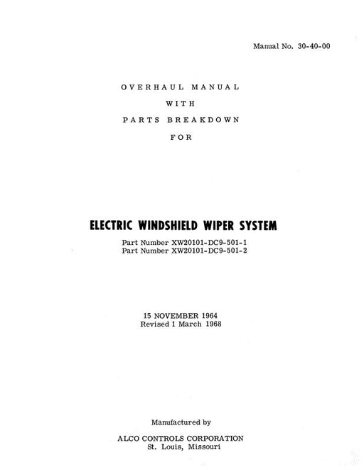 $35.00| /Alco Electric Windshield Wiper System Overhaul Manual with Parts Breakdown (30-40-00)