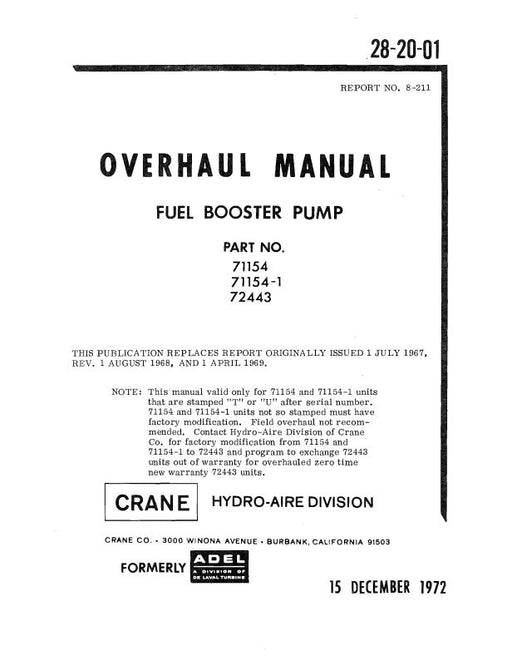 $23.00| /Hydro-Aire Fuel Booster Pump 1972 Overhaul Manual (8-211)