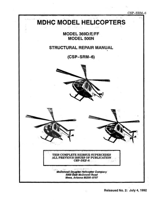 $58.00| /Hughes Helicopters 500N Model 369D-E-FF 1992 Structural Repair Manual (CSP-SRM-6)