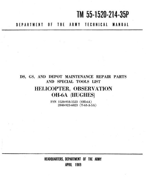 $178.00| /Hughes Helicopters OH-6A 1969 DS, GS, & Depot Maintenance Repair Part & Special Tools List (55-1520-214-35P)