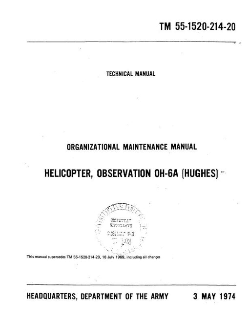 $91.00| /Hughes Helicopters OH-6A 1969 Organizational Maintenance Manual (55-1520-214-20)
