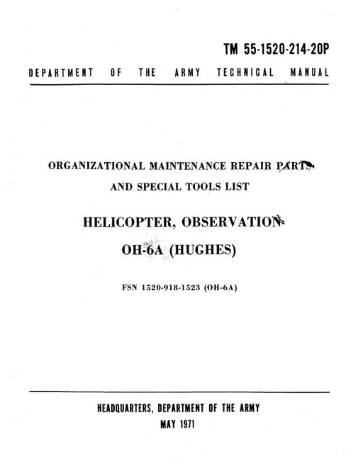 $89.00| /Hughes Helicopters OH-6A 1971 Maintenance Repair Parts and Special Tools List (55-1520-214-20P)