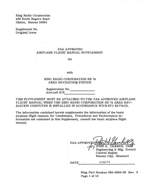 KingKN 74 Area Nav Computer - 006-0056-00 - Revision 1 - Dec. 1973