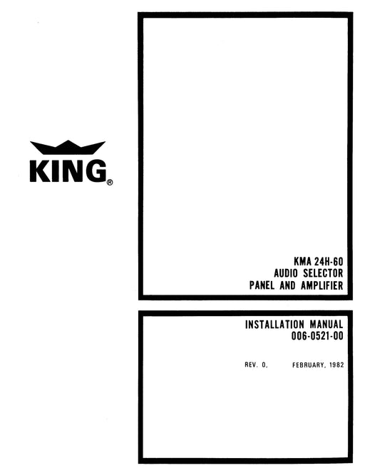 KingKMA 24H-60 Audio Selector Panel And Amplifier Installation Manual - 006-0521-00 Rev. 0 - February 1982 KMA 24H-60 Aircraft Audio Interphone Amplif...