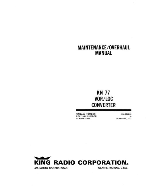 $92.00| /King KI201C,211C,212,213,214 1974 Maintenance-Overhaul-Installation (006-5052-02)