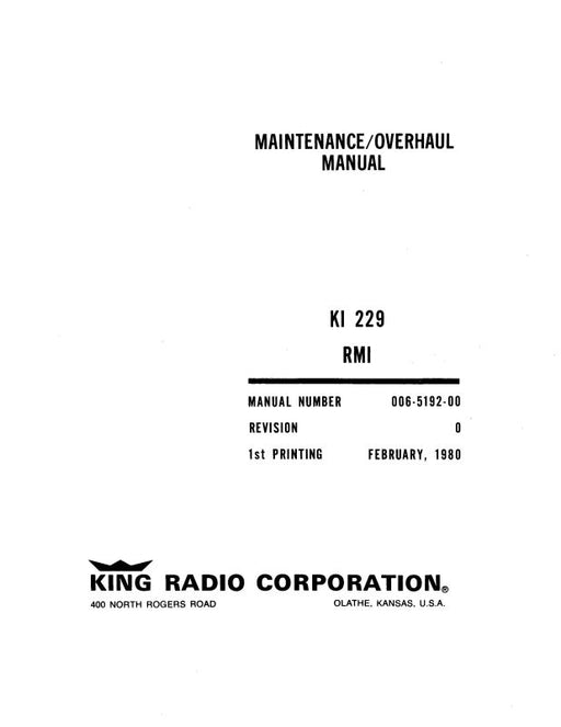 $46.00| /King KI 229 Radio Mag. Indicator 1983 Maintenance, Installation, Overhaul (006-0192-02)