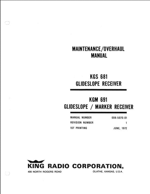 $52.00| /King KGS 681 Glideslope Receiver-KGM 691 Glideslope-Marker Receiver Maintenance-Overhaul Manual (006-5070-01)