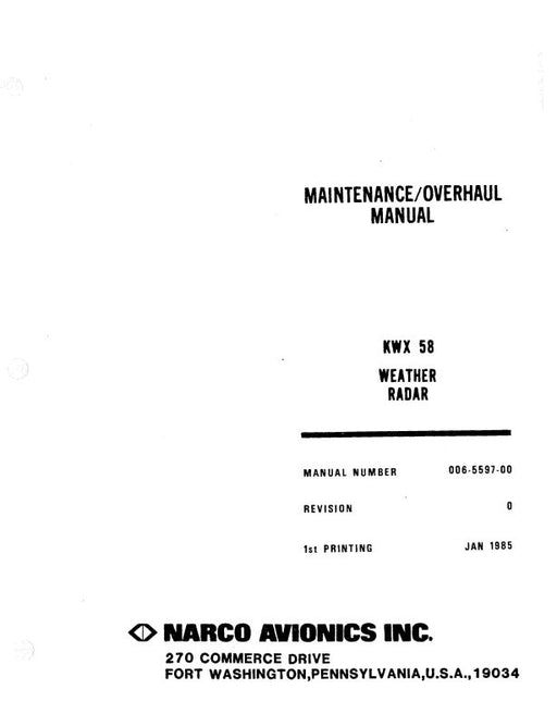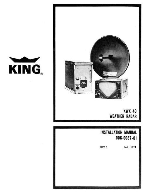 KingKWX 40 Weather Radar Installation Manual 006-0087-02 Rev 2 April 1976 Maintenance/Overhaul 006-5087-01 Rev 1 Feb 1974