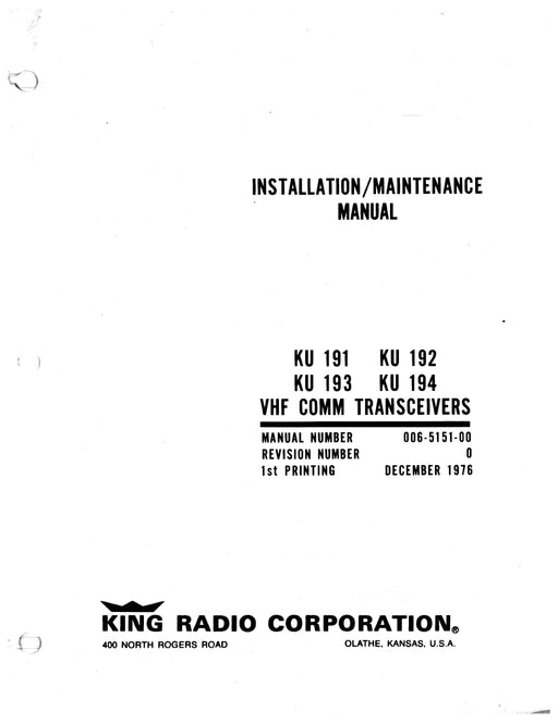 $75.00| /King KWX 40 Installation, Maintenance, Overhaul 006-5087-01