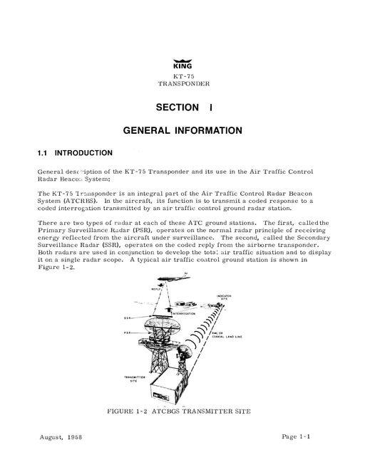 KingKT-75/75R Transponder Installation and Maintenance Manual - Manual # 006-5019-2 - Revision 2 -Dated August 1968