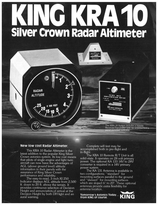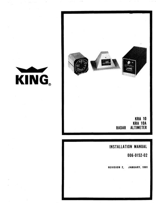 Sale $29.00| /King KRA 10-10A Radar Altimeter Installation Manual 1985 (006-0152-03)