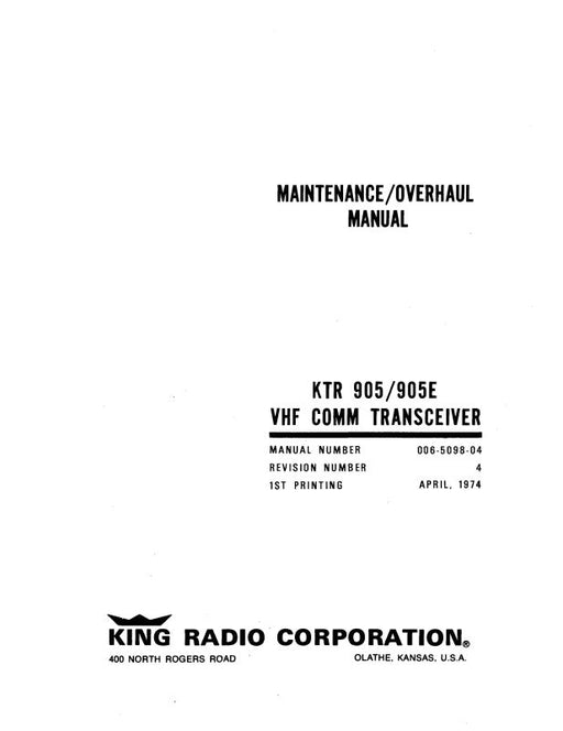 $86.00| /King KTR 908 VHF Comm Transceiver Maintenance-Overhaul Manual (006-5197-02)