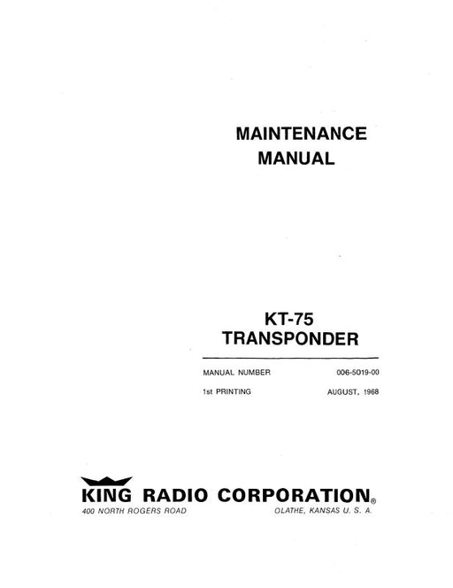 Sale $58.00| /King KT-75, KT-75R Transponder Maintenance-Installation Manual (006-5019-02)
