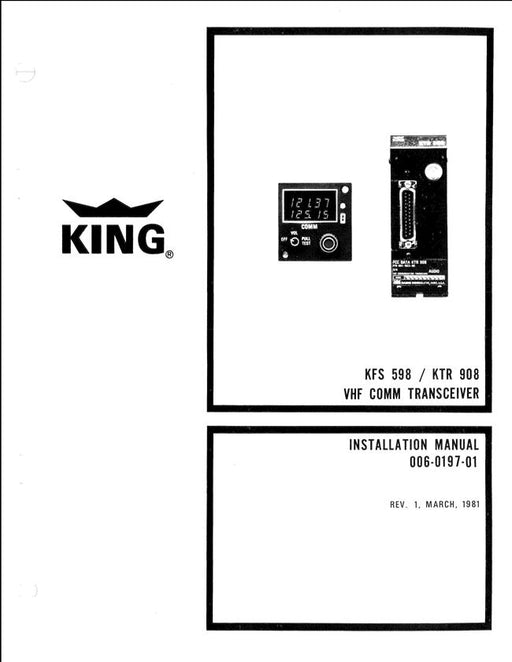 Sale $23.00| /King KTR-900 VHF Comm Transceiver Installation Manual