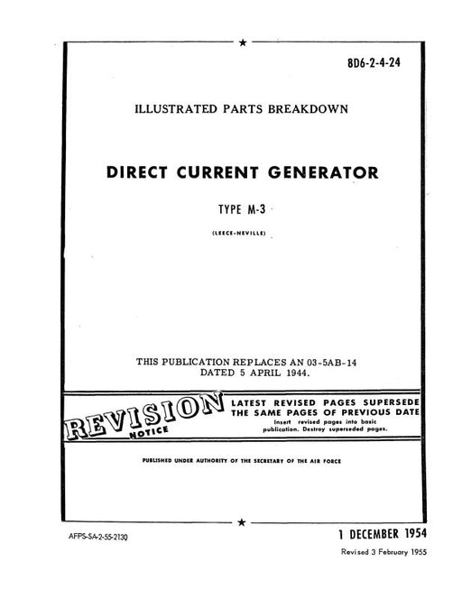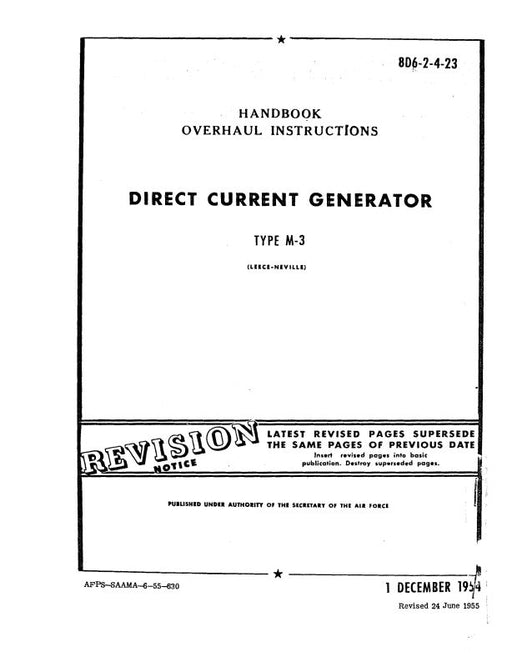 $23.00| /Leese Neville M-3 Generator 1954 Overhaul Instructions (8D6-2-4-23)