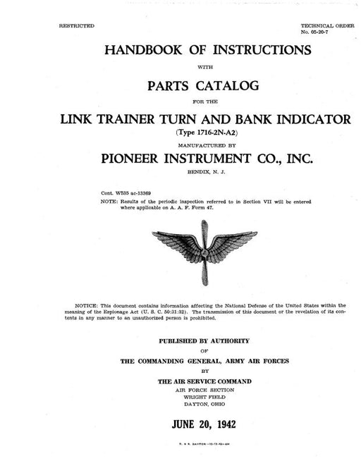 $35.00| /Link Trainers Type 1716-2N-A2 1942 Handbook Of Instructions With Parts Catalog (5/20/2007)