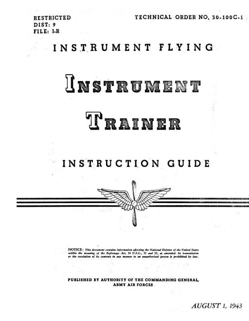 $58.00| /Link Trainers Instrument Trainer 1943 Instruction Guide (30-100C-1)