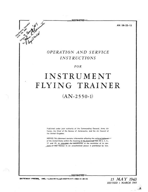 $54.00| /Link Trainers AN-2550-1 1943 Operation And Service Instructions (8/25/2015)