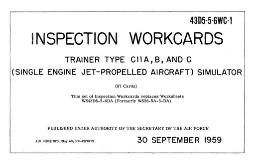$58.00| /Link Trainers Type C11A, B, C 1959 Inspection Workcards (43D5-5-6WC-1)