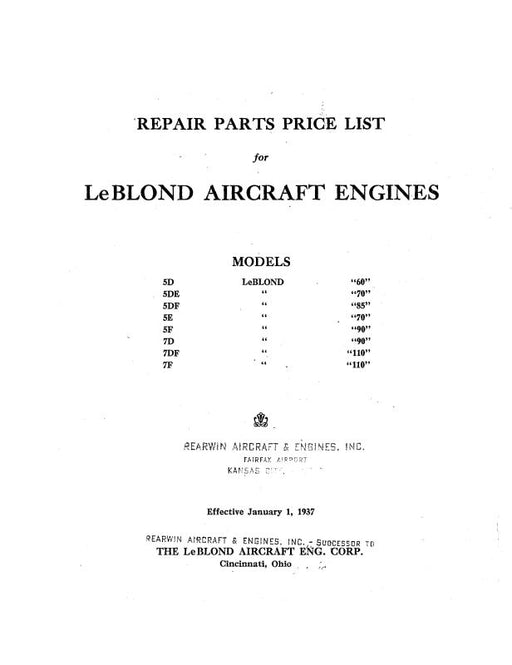 $12.00| /Leblond 60,70,85,70,90,110 Repair Parts Price List 1937 (LOLEBLOND-37-P-C)