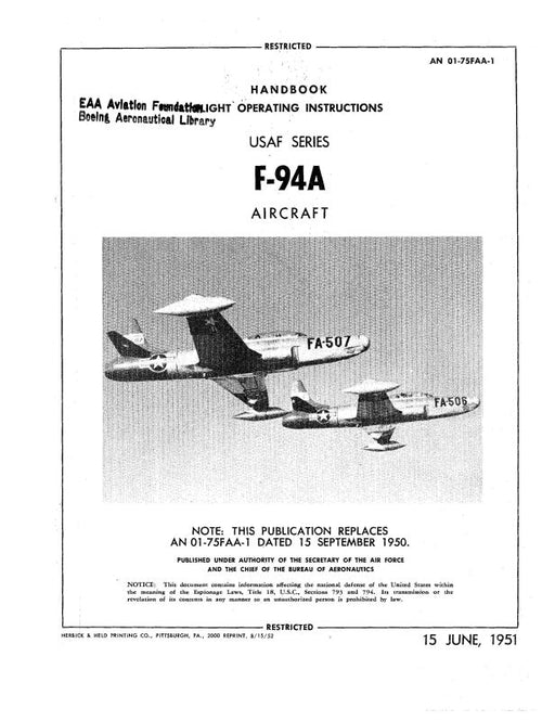 $22.00| /Lockheed F-80A-1,5,10 & RF-80A-5,10 Flight Operating Instructions Handbook (01-75FJA-1)