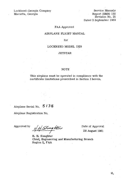 Sale $457.00| /Lockheed Jet Star Series Handbook of Operating & Maintenance Instructions