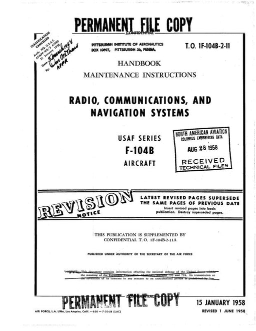 $46.00| /Lockheed F-104B 1958 Maintenance Instructions (1F-104B-2-11)