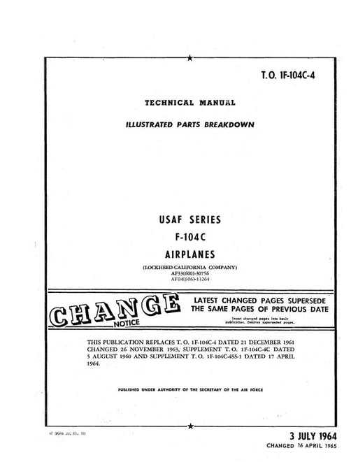 $297.00| /Lockheed F-104C 1964 Illustrated Parts Breakdown (1F-104C-4)