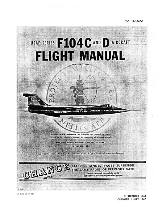 $123.00| /Lockheed F-104C & F-104D 1964 Flight Manual (1F-104C-1)