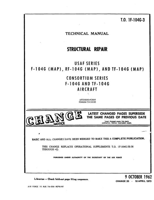 $52.00| /Lockheed F-104G(Map) & RF-104G(Map)1964 Organizational Maintenance (1F-104G-2-2)