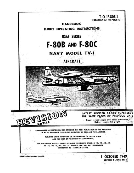 Sale $168.00| /Lockheed F-80B,C Army & TV-1 Navy 1947 Erection & Maintenance Instructions (1F-80B-2)