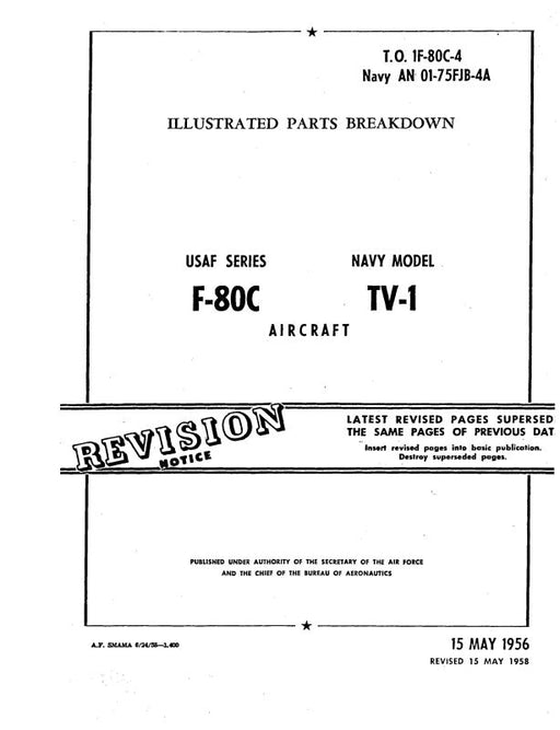 $161.00| /Lockheed F-80C USAF & TV-1 Navy 1956 Illustrated Parts Breakdown (1F-80C-4)