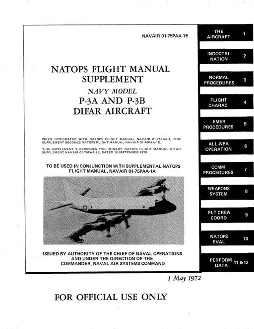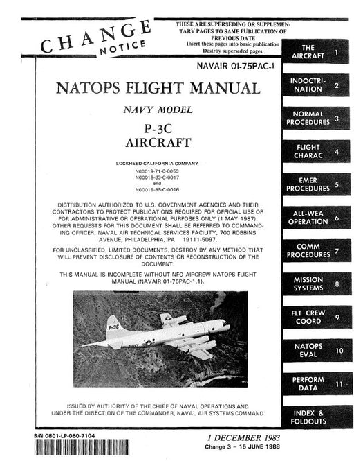 Sale $255.00| /Lockheed P-3A & P-3B 1983 Natops Flight Manual (01-75PAA-1)