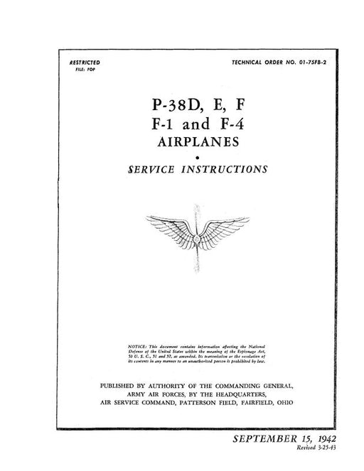 Sale $164.00| /Lockheed P-38H-1,5,P-38J-1,5,10,F-5B-1 Maintenance & Erection Instructions (01-75-2)