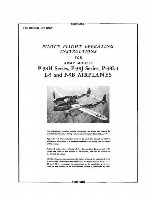 Lockheed MilitaryP38F-5, -13, -15, P38G-1, -3, -5, -10, -15, F5A-1, -3, -10