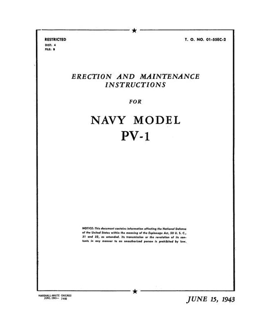 $207.00| /Lockheed PV-1 Navy Model 1943 Erection & Maintenance Instructions (01-55EC-2)