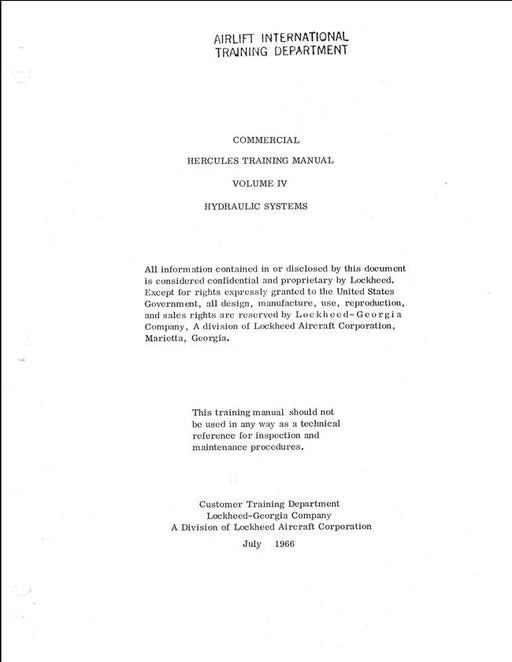 Sale $23.00| /Lockheed Jetstar Training Manual Volume 5A Hydraulic Systems A/C 5046-5055 (LHJETSTARHYD-MC)