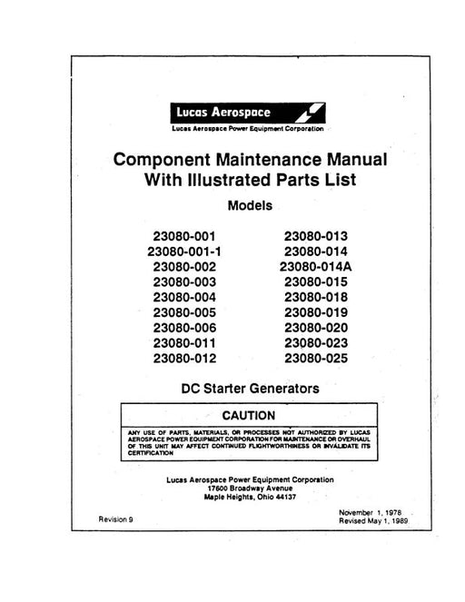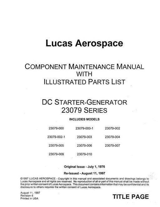 $118.00| /Lucas Aerospace 23079 Series 1976 Component Maintenance Manual w-Illustrated Parts (SC23079005-76-M)