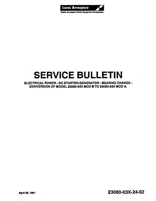 $40.00| /Lucas Aerospace 23080 Series 1991 Service Bulletin (23080-03X-24-02)