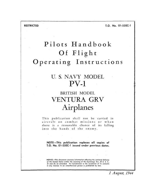 Lockheed MilitaryNavy Models PV-1 & PV-3, British Models Ventura BI, BII, BIIA, GRIII & BIV Airplanes Revised May. 1944