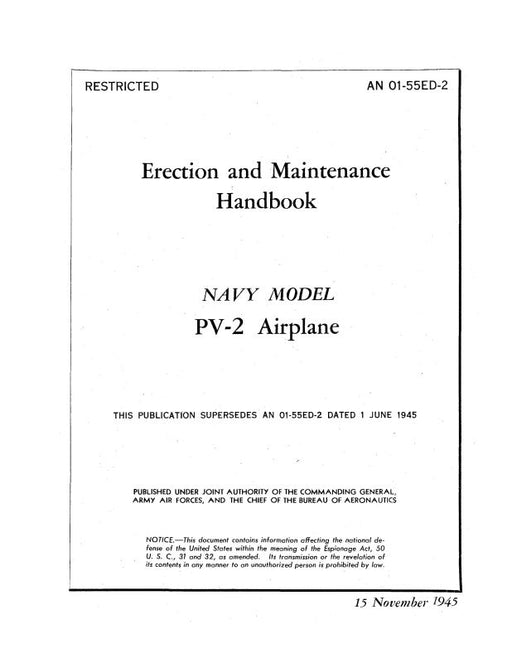 $259.00| /Lockheed PV-2 Navy Airplane 1945 Erection & Maintenance Handbook (01-55ED-2)