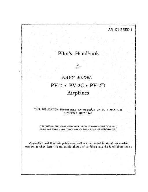 $35.00| /Lockheed PV-2, PV-2C, PV-2D 1945 Pilot's Handbook (01-55ED-1)