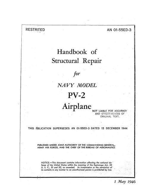 $97.00| /Lockheed PV-2 Navy Airplane 1946 Structural Repair Handbook (01-55ED-3)