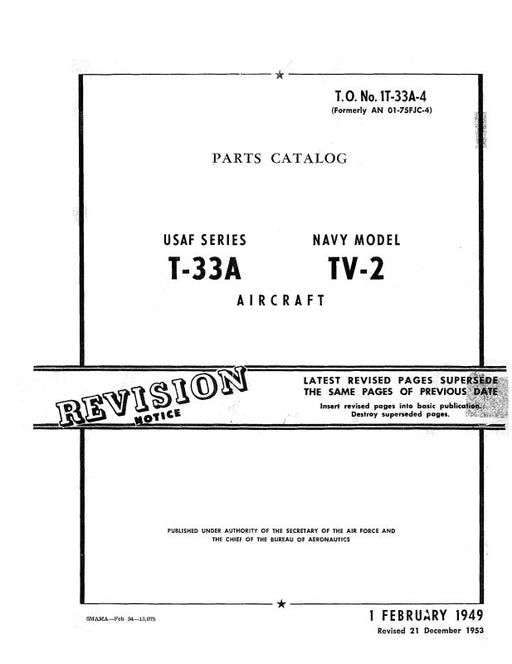 $104.00| /Lockheed T-33A USAF, Navy TV-2 1955 Parts Catalog (1T-33A-4)