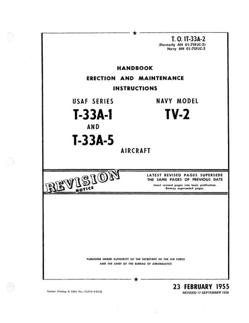 $302.00| /Lockheed T-33A-1,5 USAF & TV-2 Navy1956 Erection & Maintenance Instructions (1T-33A-2)