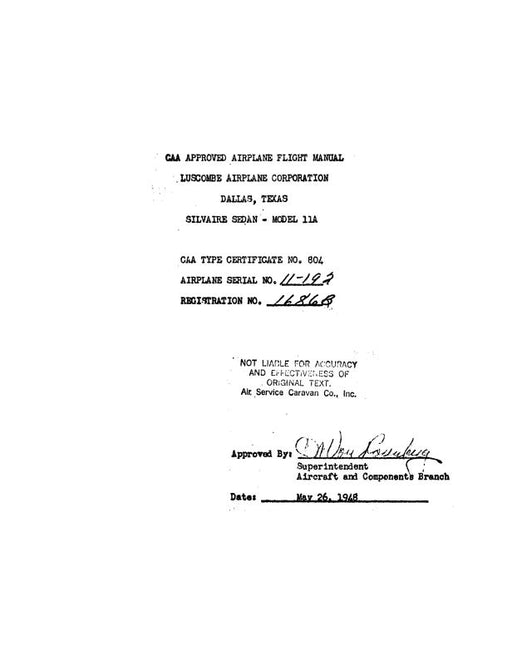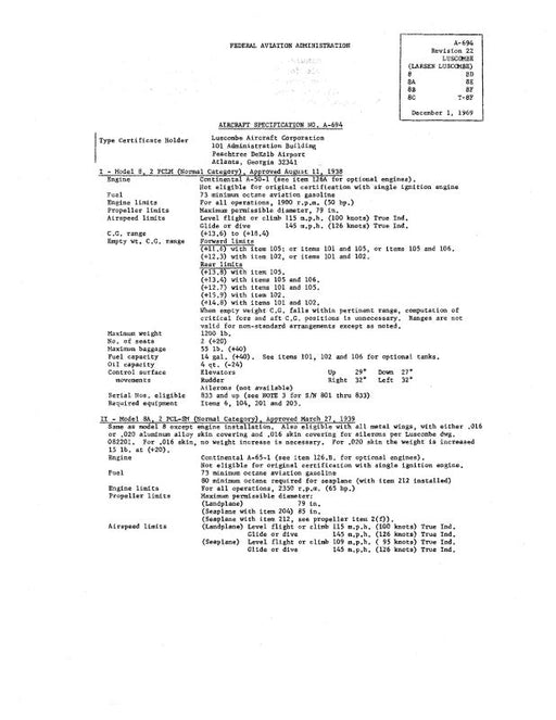 $10.00| /Luscombe 8A Series Owner's Handbook of Operation (LU8,A-O-C)