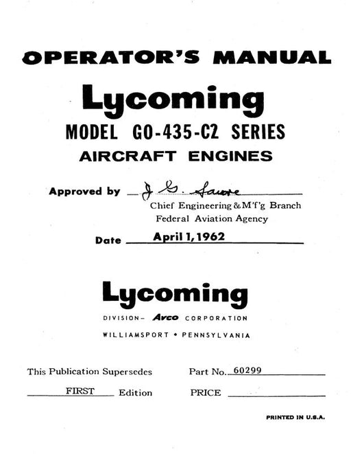 Sale $9.00| /Lycoming GO-435SEREngineAircraft Specifications Engine Aircraft Specifications (LYGO435-63-SP-C)