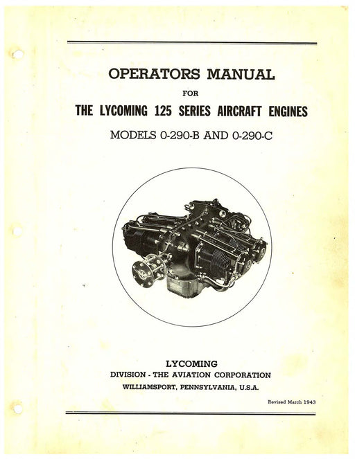 LycomingOperators Manual For The Lycoming 125 Series Aircraft Enigines. Models O-290B and O-290-C. Revised March 1943. Contents: Specifications, Descri...